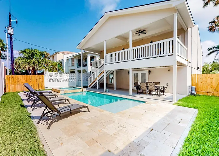 **Carolyn's Seashell Retreat Villa** offers a sublime escape nestled on the sun-kissed shores of South Padre Island, just 45 kilometers from the vibrant city of Brownsville. This sumptuous retreat combines unpretentious luxury with the easy-going charm of coastal living. Guests will find themselves enveloped by the soothing sounds of the ocean and the stunning vistas that stretch before them, making each arrival feel like a homecoming.